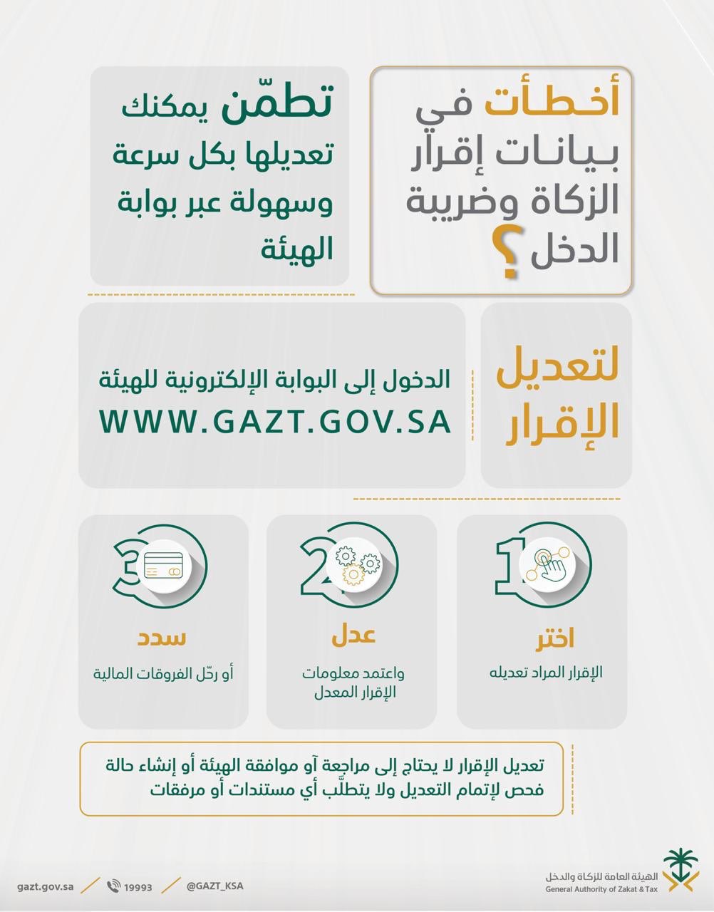 الهيئة العامة للزكاة والدخل בטוויטר يمكنك تعديل إقرار الزكاة وإقرار ضريبة الدخل بكل سهولة عبر البوابة الإلكترونية لهيئة الزكاة والدخل