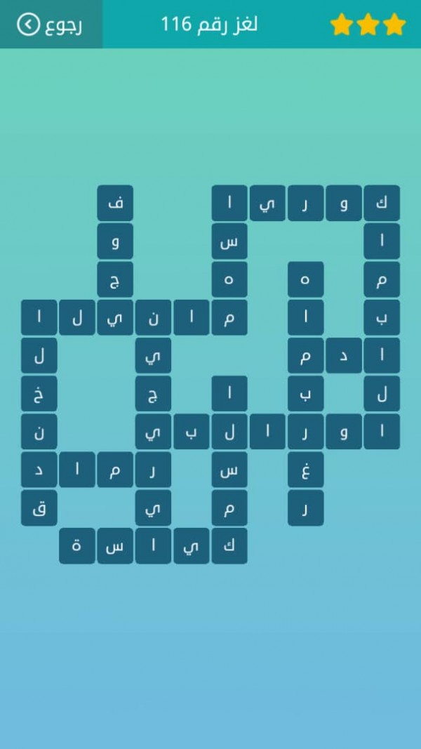 الصورة ترمز الى 3 حروف كلمات متقاطعة