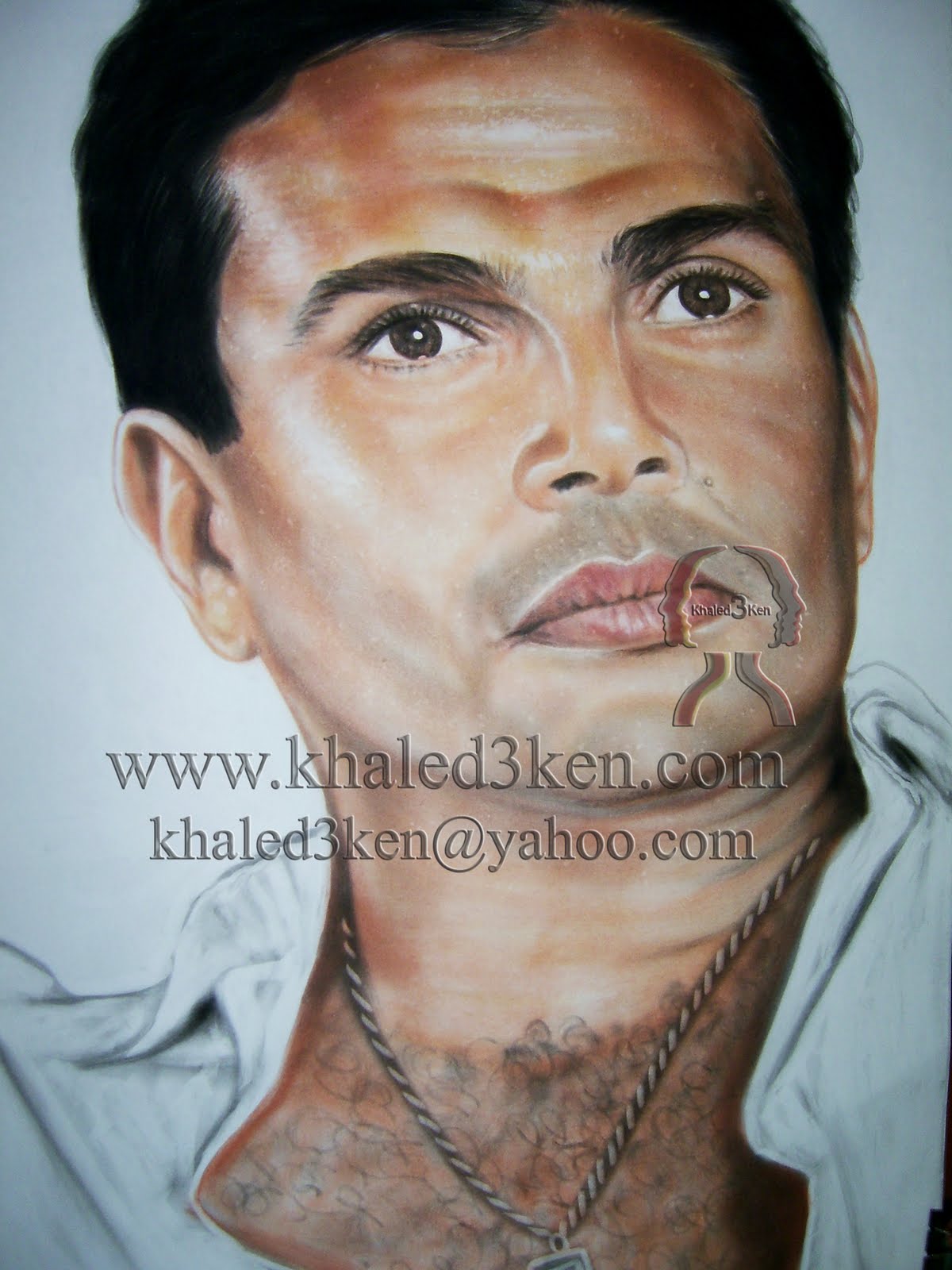 بورتريه للفنان عمرو دياب الوان باسك جروب الرسام خالد عبد الكريم Facebook
