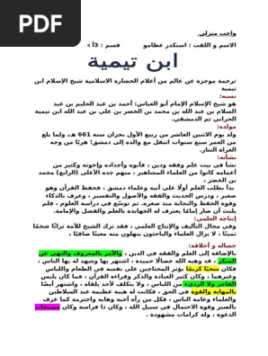 تحميل كتاب ترجمة شيخ الإسلام ابن تيمية Pdf مكتبة نور لتحميل الكتب الإلكترونية