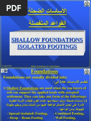 تصميم القواعد المنفصله والشريطيه Design Of Isolated Footing Pdf Document