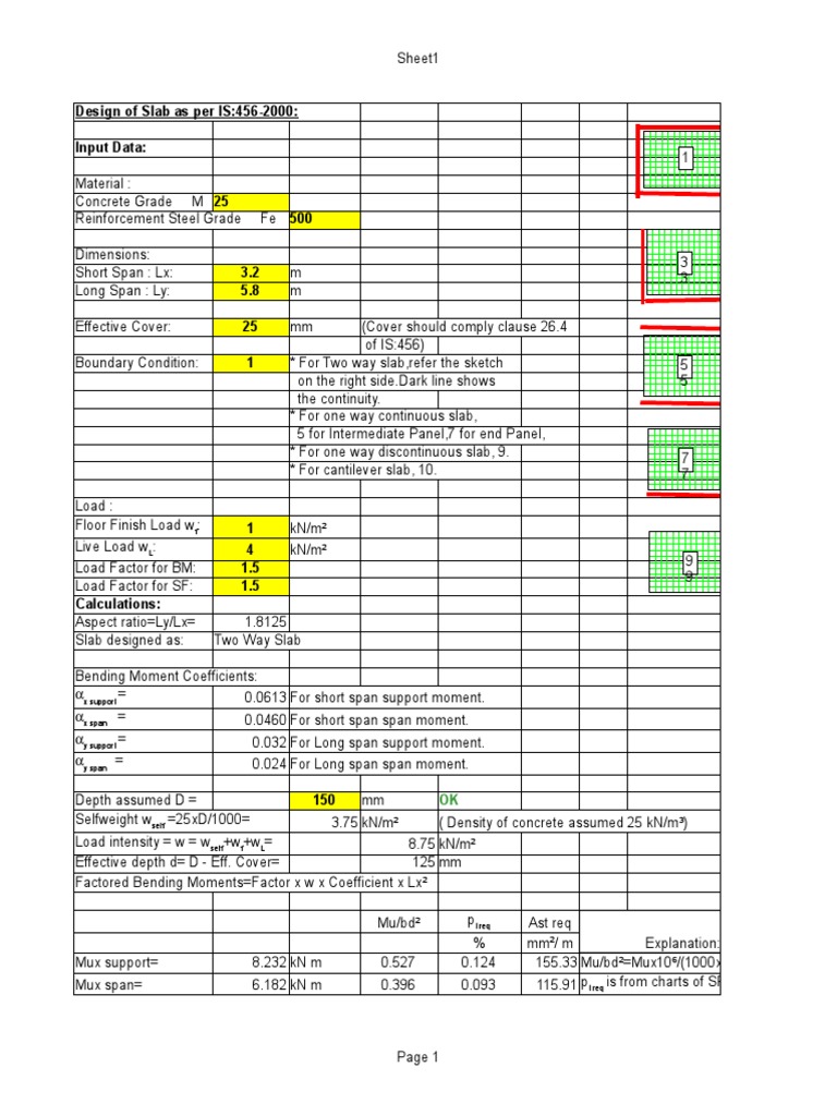 Two Way Slab Design Spreadsheet Reinforced Concrete Concrete