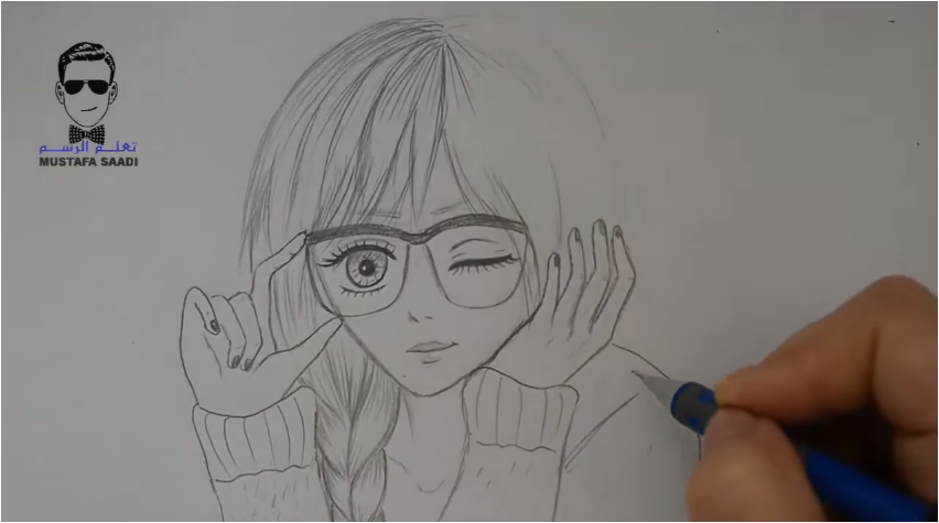 تعلم رسم فتاة انمي بالنظارة بالقلم الرصاص للمبتدئين تعلم الرسم